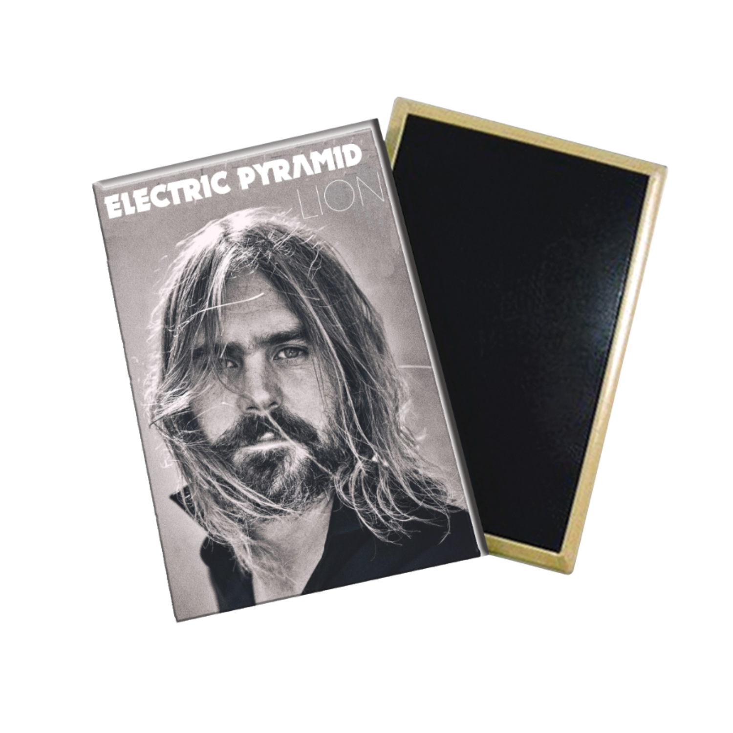 Magnet souvenir avec visuel de l’album Electric Pyramid – Lion. Parfait pour décorer un frigo ou offrir à un fan du groupe.
